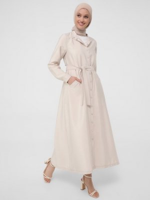 Refka Açık Vizon Çıtçıtlı Belden Büzgülü Kap