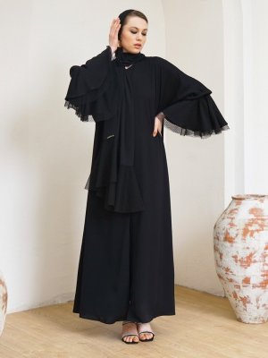 AL SHEIKHA Siyah Volanlı Abaya Ferace