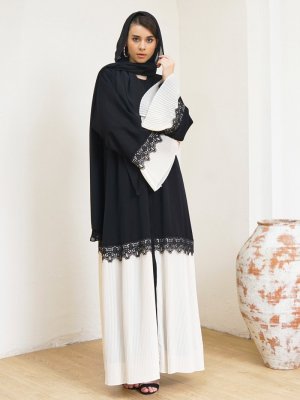 AL SHEIKHA Siyah Krem Piliseli Ferace