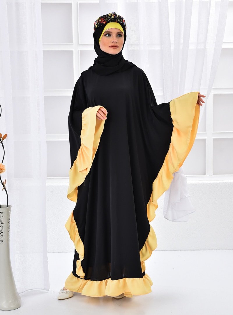 Filizzade Siyah Sarı Yanları Garnili Ferace Elbise