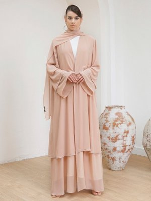 AL SHEIKHA Nude Double Şifon Abaya Takım