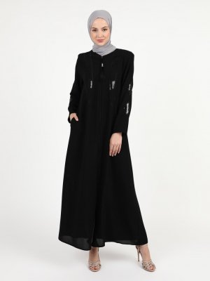 ŞAHİN FERACE Siyah Boydan Fermuarlı Ferace