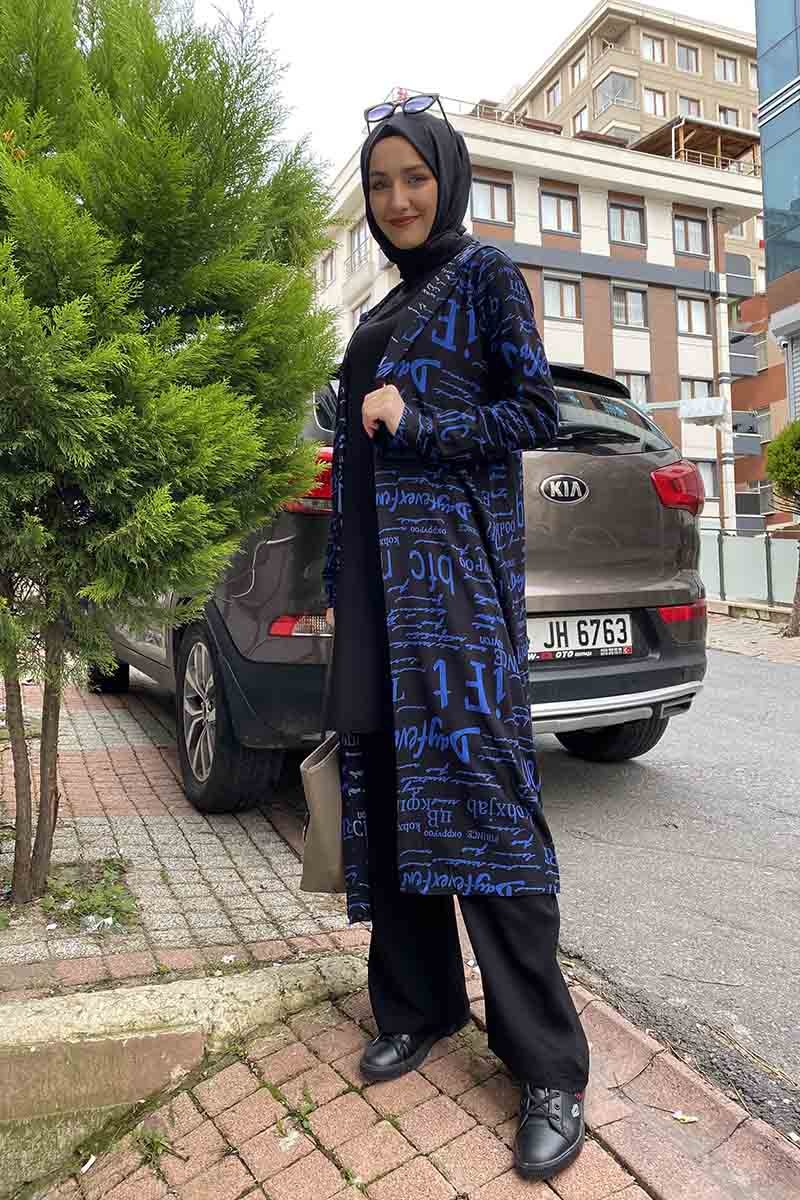MODAPİNHAN Siyah İndigo Yazılı Lü Takım