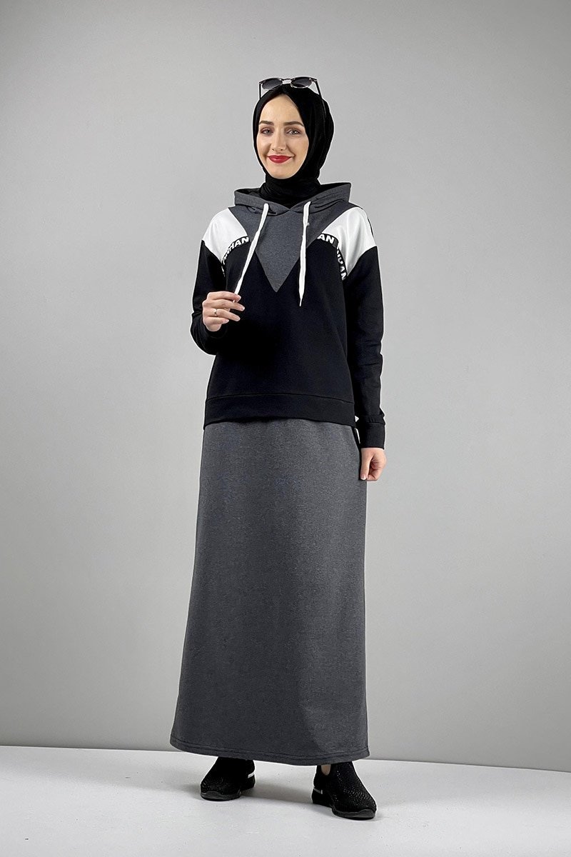 MODAPİNHAN Antrasit Siyah Etekli Takım