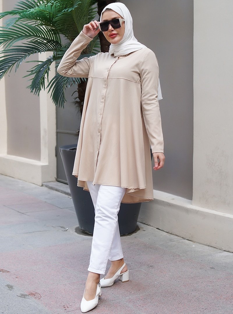 Por La Cara Taş Önden Düğmeli çan Etek Gömlek Tunik