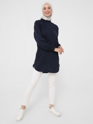 Benin Lacivert Kol ve Yaka Gipe Detaylı Rahat Tunik