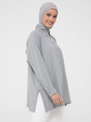 Refka Mavi Gri Yırtmaç Detaylı Aerobin Tunik