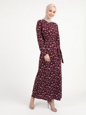 Zinet Mürdüm Çiçek Desenli Elbise