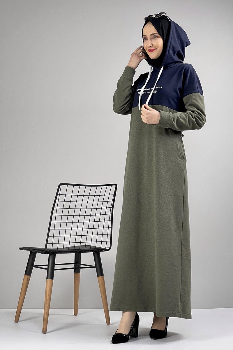 MODAPİNHAN Haki Garnili Baskılı Elbise