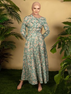 BÜRÜN Mint Çiçek Desenli Elbise