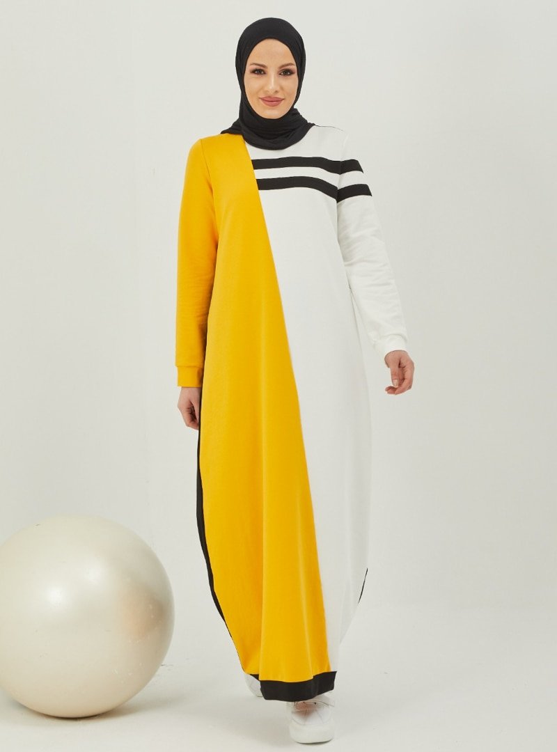 AİŞE MODA Sarı Beyaz Garnili Spor Elbise