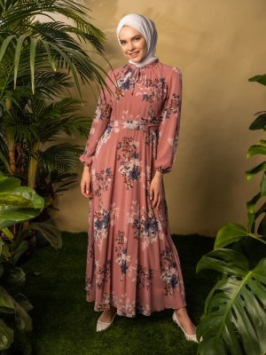 BÜRÜN Gül Kurusu Çiçek Desenli Elbise