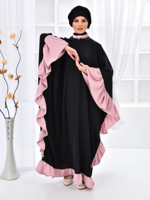 Filizzade Siyah Pudra Yanları Garnili Ferace Elbise