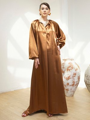 AL SHEIKHA Kahverengi Saten Kaftan Ferace