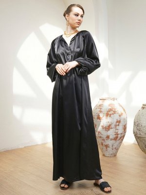 AL SHEIKHA Siyah Saten Kaftan Ferace