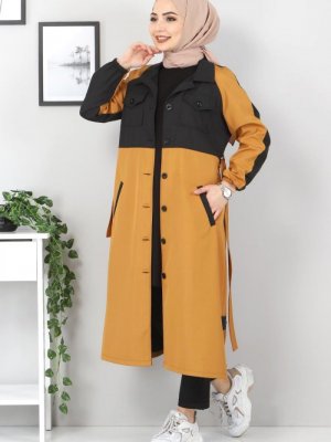 Tesettür Dünyası Taba Çift Renkli Trençkot