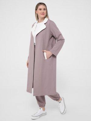 Alia Toz Ekru Lila Büyük Beden Kuşaklı Spor Kap