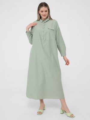 Alia Yağ Yeşili Büyük Beden Cep Detaylı Elbise