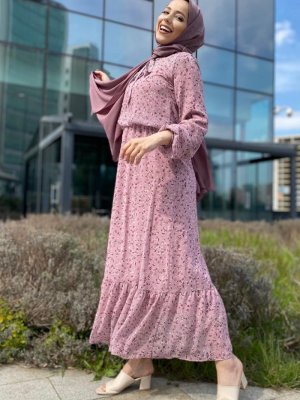 Meqlife Pembe Pudra Verena Şifon Elbise