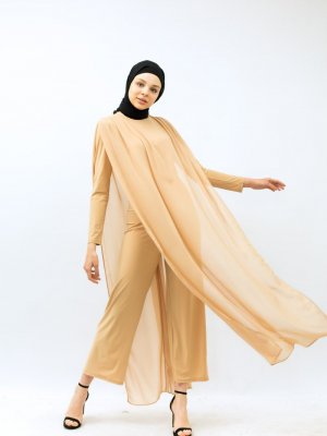 Tuba Mutioğlu Bej Krem Kemerli Şifon Tulum