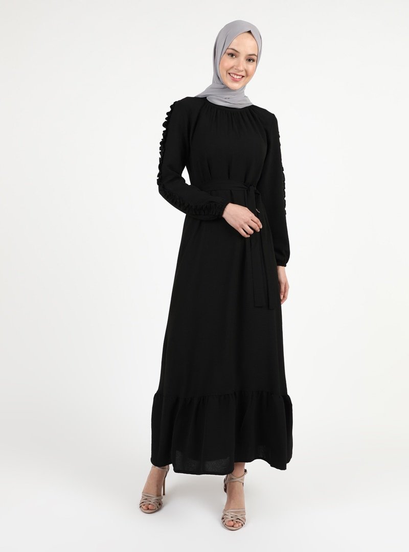 ZENANE Siyah Fırfır Detaylı Elbise