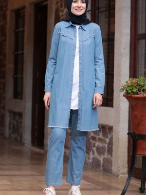 Amine Hüma Mavi İncili Kot Takım