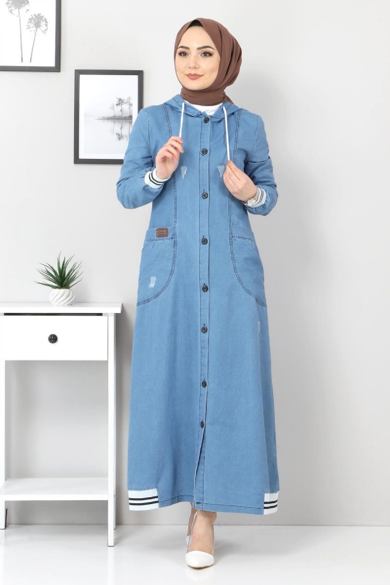 Tesettür Dünyası Mavi Ribanalı Kot Kap