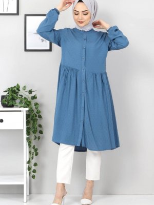 Tesettür Dünyası Mavi Pileli Tunik