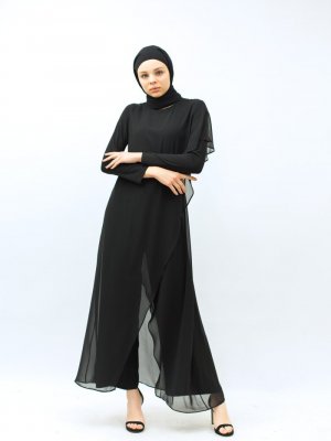 Tuba Mutioğlu Siyah Kemerli Şifon Çapraz Tulum