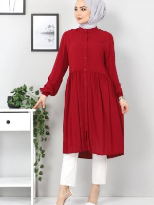 Tesettür Dünyası Bordo Pileli Tunik