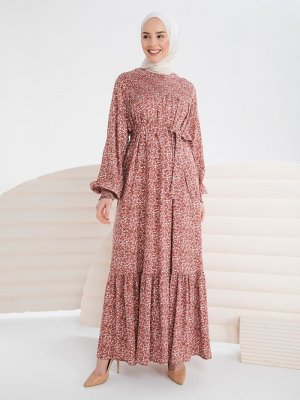 İnşirah Gül Kurusu Desenli Elbise