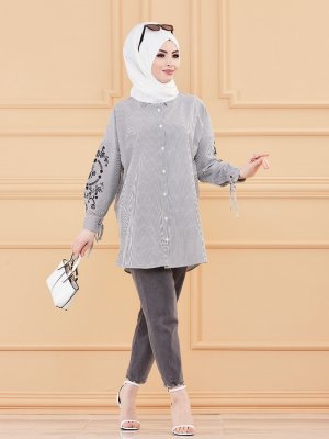 Tofisa Siyah Düğmeli Tunik