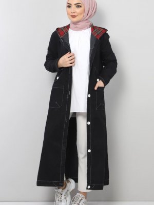 Tesettür Dünyası Siyah Kapüşonlu Kot Kap