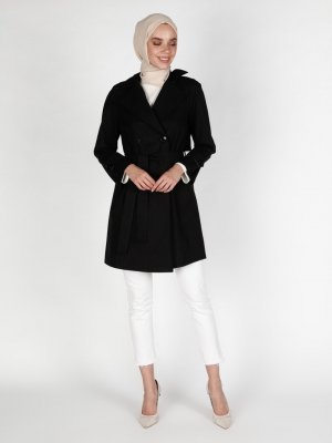 Concept By Olcay Siyah Düğme Detaylı Trençkot