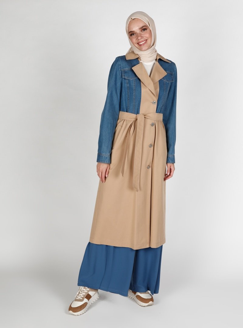 Olcay Camel Düğme Ve Kot Detaylı Trençkot