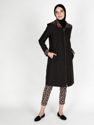 Olcay Siyah Boydan Fermuarlı Trençkot