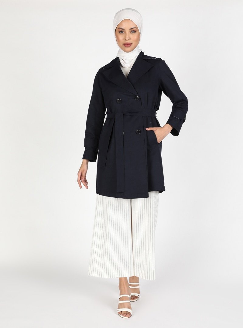 Concept By Olcay Lacivert Düğme Detaylı Trençkot