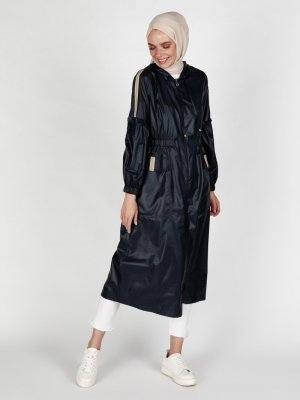 Olcay Lacivert Boydan Fermuarlı Trençkot