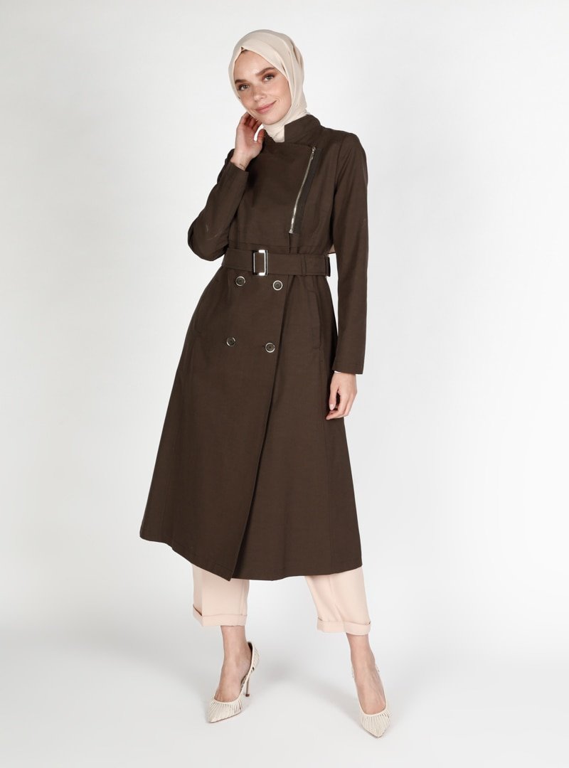 Concept By Olcay Haki Yarım Fermuarlı Kemerli Trençkot
