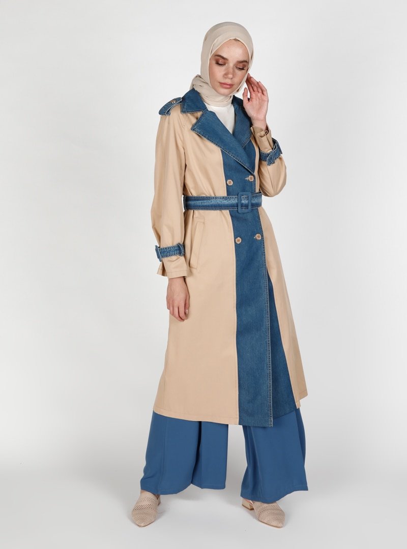 Olcay Açık Camel Yarım Düğmeli Kemerli Trençkot