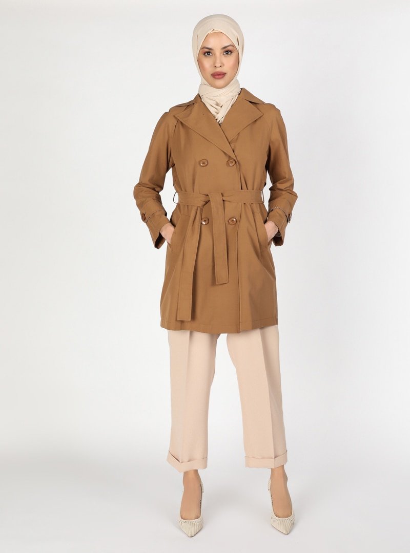 Concept By Olcay Camel Düğme Detaylı Trençkot