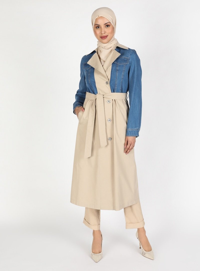 Olcay Bej Düğme Ve Kot Detaylı Trençkot