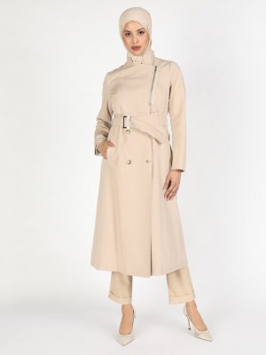 Concept By Olcay Bej Yarım Fermuarlı Kemerli Trençkot