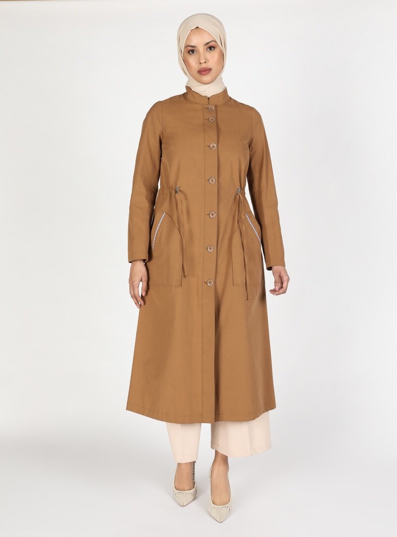 Olcay Camel Düğme Detaylı Trençkot