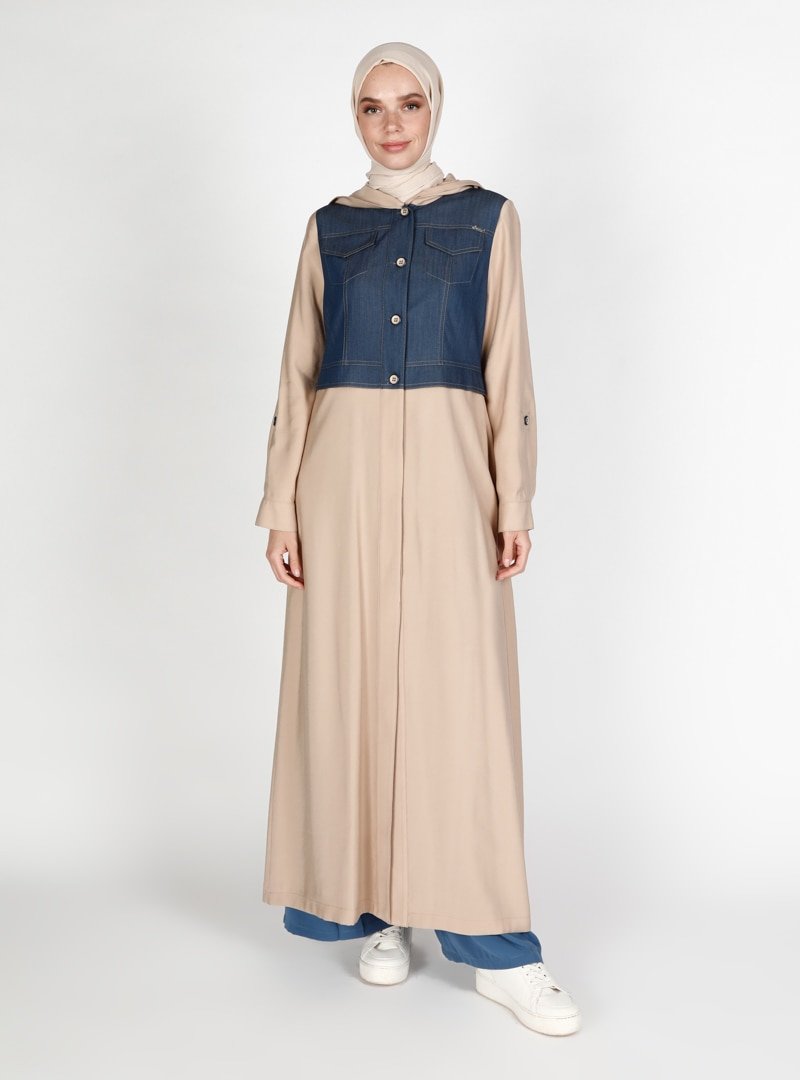 Olcay Bej Kapüşonlu Kot Detaylı Pardesü