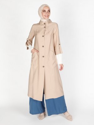 Olcay Bej Düğme Detaylı Kap