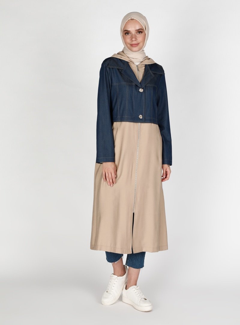 Olcay Taş Kapüşonlu Kot Detaylı Kap