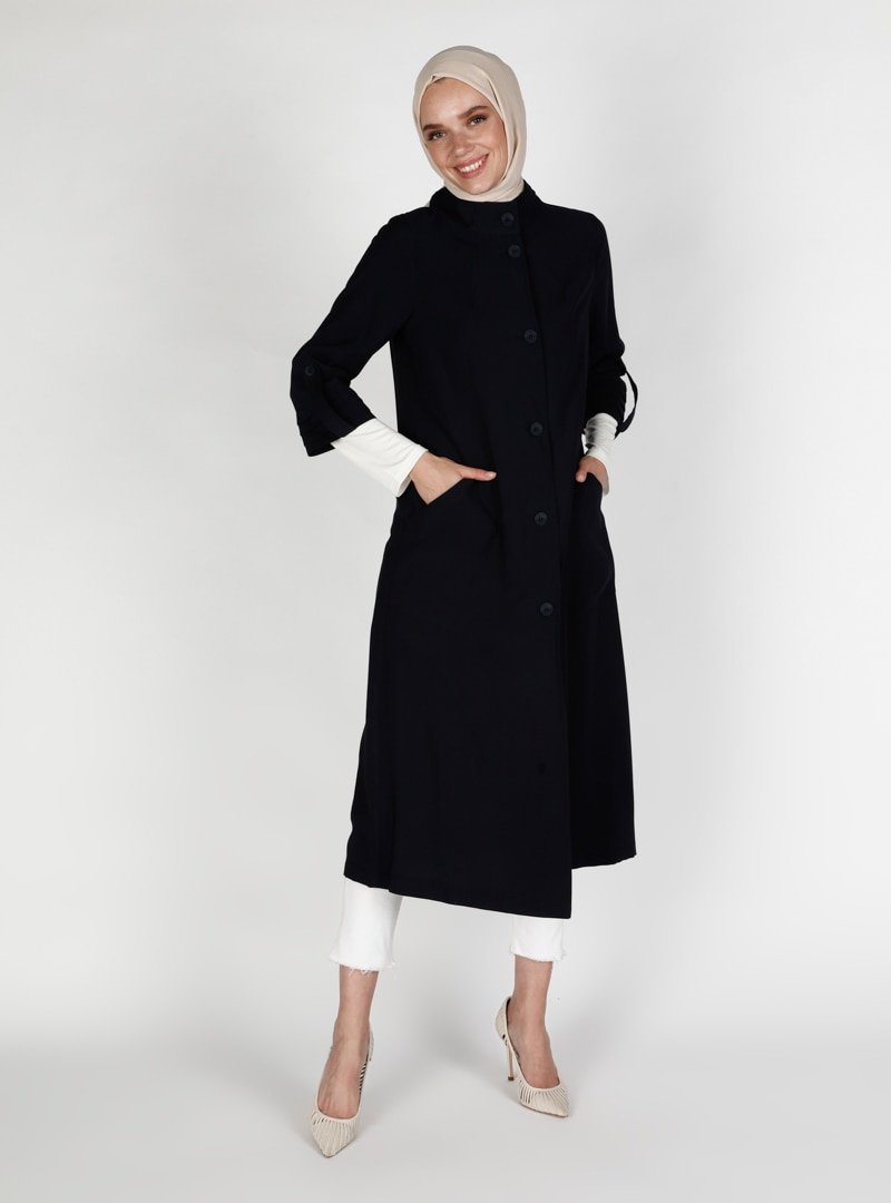 Olcay Lacivert Düğme Detaylı Kap