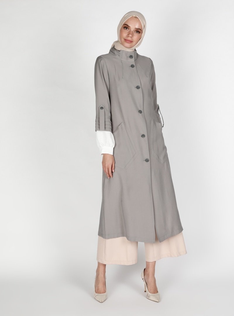 Olcay Gri Düğme Detaylı Kap