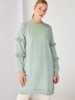 Trendyol Modest Mint Bisiklet Yaka Kolda Fırfır Detaylı Tunik